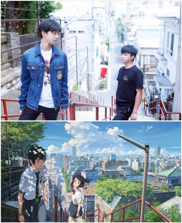 王俊凯神还原《你的名字》,近日,王俊凯在微博晒出一组在东京游玩时拍摄的照片,其中还原新海诚动画《你的名字》场景的几张照片尤其抢眼,引发网友围观,小凯虽在评论里解释道是助理“非要跟我拍”,但网友还是认为小凯将自己的二次元属性暴露无遗,下面就和小编一起来欣赏一下这组美图吧!